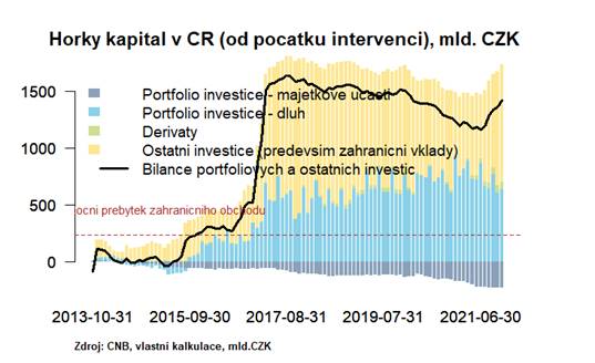 Co tedy může koruna dělat v nejbližších týdnech před únorovým zasedáním ČNB? V následujících čtrnácti dnech nečekáme z domácí scény prakticky žádná významnější čísla a z globálních událostí bude pro korunu stejně jako pro ostatní středoevropské trhy klíčové zasedání Fedu. Strach z vyšších amerických sazeb totiž může odrazovat globální hráče od rizikovějších nebo méně likvidních lokalit, ke kterým se řadí i česká “kotlina”. Zatím se sice tyto obavy na českém trhu příliš neprojevovaly, ale co není, může být… Nálada na globálních trzích může být pro korunu časem čím dál víc důležitá, vzhledem k horší vnější bilanci a rychlému přílivu krátkodobého zahraničního kapitálu v posledních měsících uplynulého roku. Nestabilita zahraničního “horkého” kapitálu může být v budoucnu zdrojem výraznější volatility (viz graf níže).